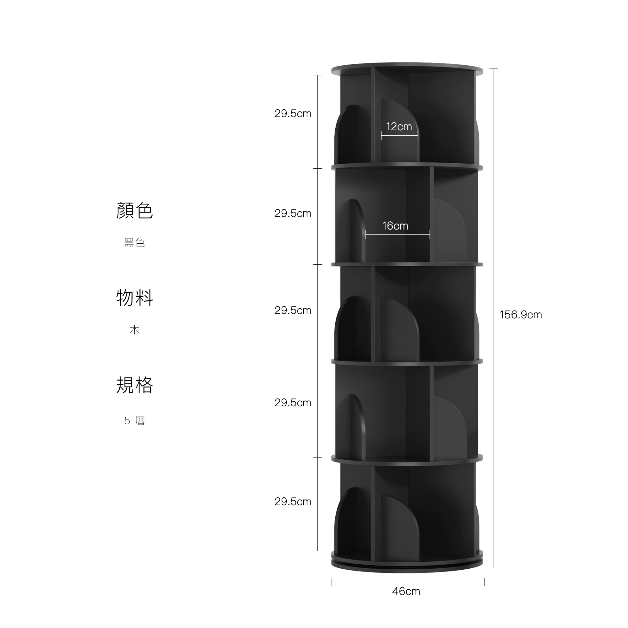 5 層:46 × 46 × 156.9 cm